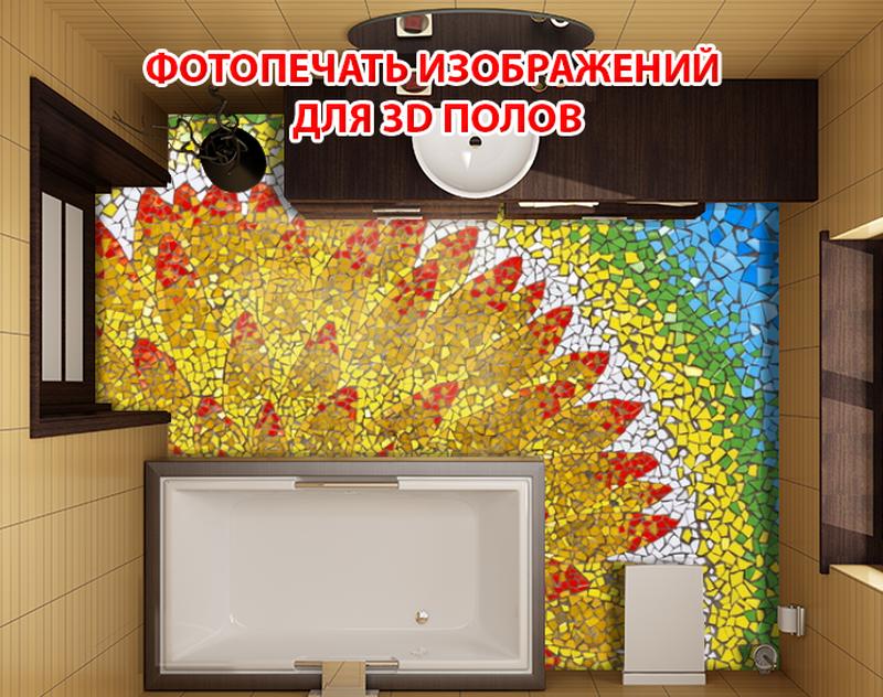 Вид матеріалу: - Самоклеюча плівка з фотодруком і захисної ламінацією Застосування: Нанесення 3d підлоги, столи, двері, стільниці, скло, під скло, ДСП, дерево, шафа-купе, будь-яку гладку поверхню. Поставляються розміри: Будь-який необхідний розмір вказується в примітках до замовлення. Розміри і масштаби зображень можуть коллажироваться в будь-яких пропорціях. Перед печаткою проект узгоджується. Накладення спецефектів: Ч/б, живопис (при оформленні замовлення вказується з яким ефектом) Поверхня: фотоглянец з яскравою насиченістю кольорів Захист від УФВ: є Захисна ламінація від механічних пошкоджень: є Друк: цифровий Чорнила: фірмовий еко пігмент без запаху Відправка товару: зі складу - протягом 8 годин під замовлення по необхідним розмірам - протягом 28 годин Звертаємо Вашу увагу, що дана позиція відпускається за повною, або частковою передоплатою. Шановні клієнти! Зверніть увагу, що у зв'язку з різницею у передачі кольорів екранів, відтінок виробу у реальності може відрізнятися від зображеного на фото.