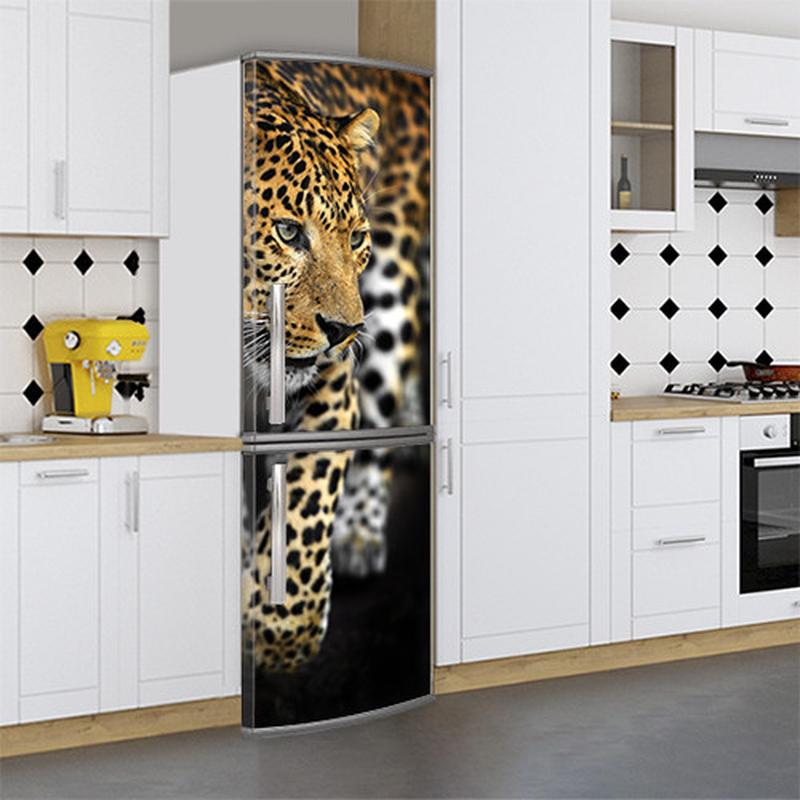 Вінілова наклейка на холодильник, леопард, 180х65 см - лицьова (в), з ламінуванням