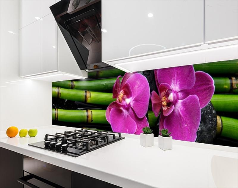 Кухонная плитка на кухонный фартук орхидеи и бамбук, с двухсторонним скотчем 62 х 205 см,...