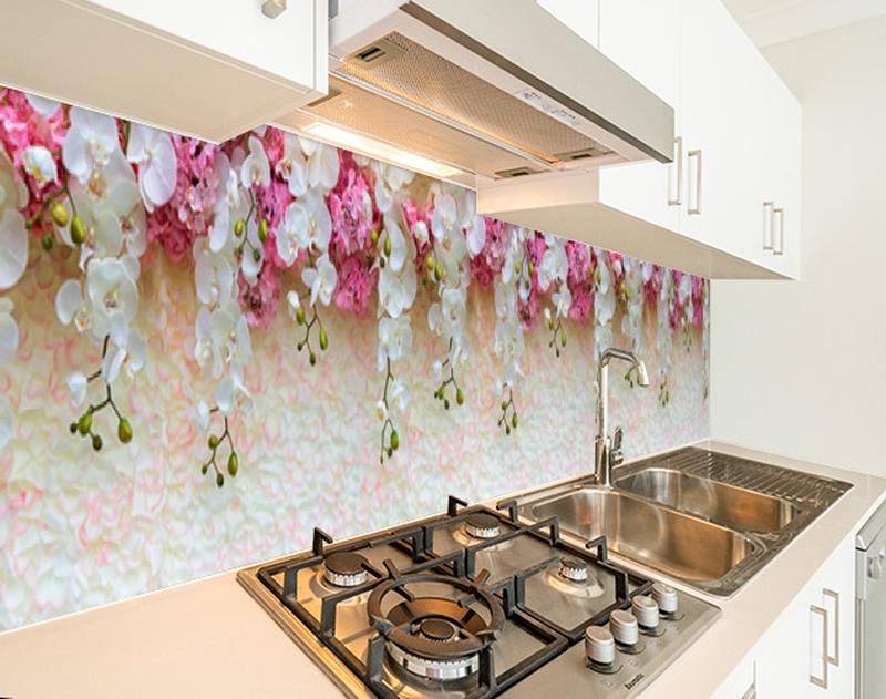 Кухонна плитка на кухонний фартух 3д квіти, з двостороннім скотчем 62 х 205 см, 1,2 мм