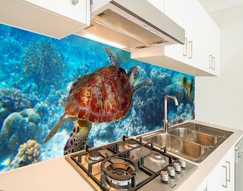 Панелі на кухонний фартух пет морське дно і черепаха, з двостороннім скотчем 62 х 205 см,...