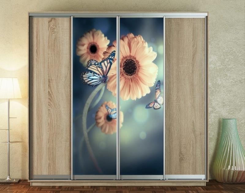 Наклейка на шафу-купе 220 х 60 см на 2 двері метелик та квіти (бп_а_ab11396)