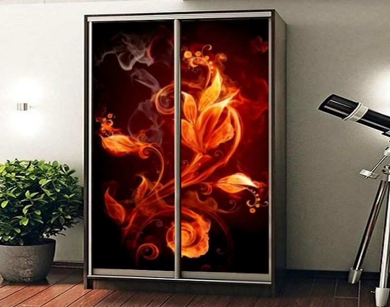 Наклейка на шафу-купе 220 х 74 см на 2 двері вогняна квітка (бп_а_fl102093)