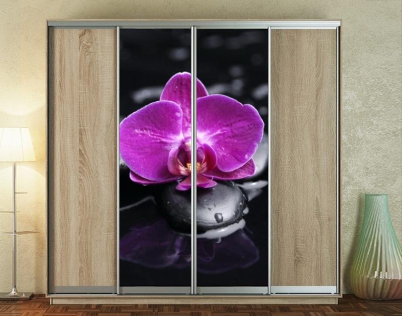 Наклейка на шафу-купе 220 х 60 см на 2 двері орхідея на камені (бп_а_fl12080)