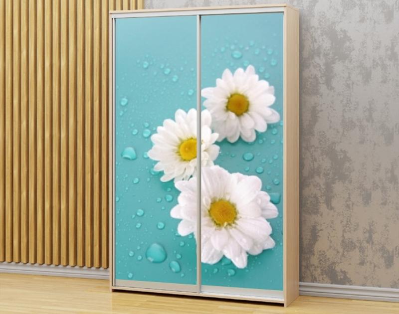 Наклейка на шкаф-купе 220 х 60 см на 2 двери белые ромашки (бп_а_fl102371)