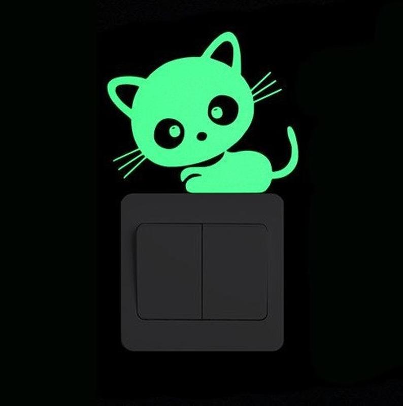 Фосфорная наклейка "кот", салатовая, размер 10*10см, (впитывает свет и светится в темноте)