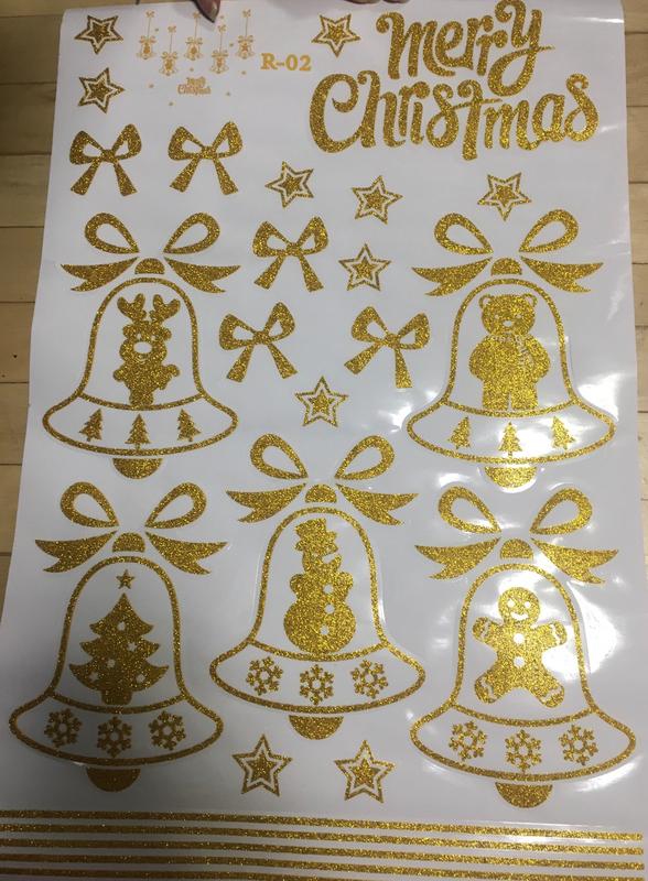 Новорічні сніжинки на вікна золоті з блискітками - розмір стікера 50*32см, силікон
