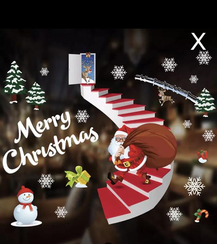 Різдвяні наклейки на вікна "дід мороз на сходах" - картина на 2-х листах розмірами 35*50см...