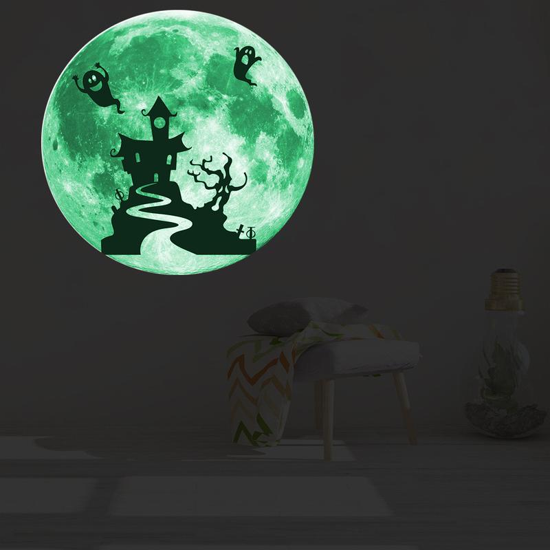 Наклейка на хэллоуин замок с привидениями 30 см салатовый