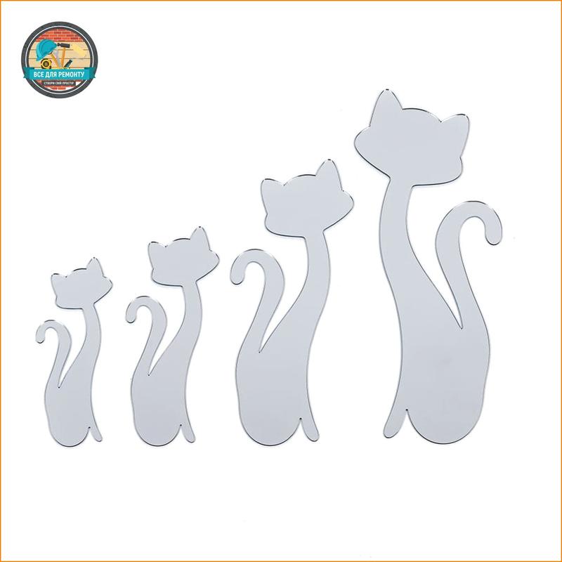Дзеркальний декор акриловий самоклеючий котики срібло, 4шт (d) sw-00002494