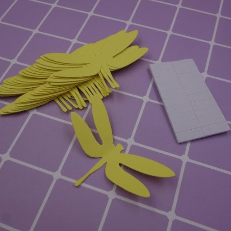 Красивый декор на стену стрекозы желтые - в наборе 20 штук размером 7*3,5см, картон, есть...