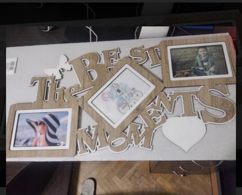 Фоторамка колаж "Best Moments" нова, повністю запечатана. Розмір - 64х33 див. 3 рамки розміром 10*15 Матеріал - двп, світле дерево