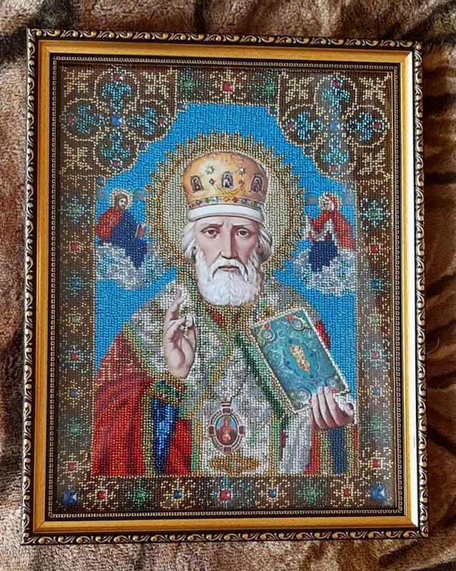 Икона бисером "Николай Чудотворец". Размер 35х26 см. Под стеклом