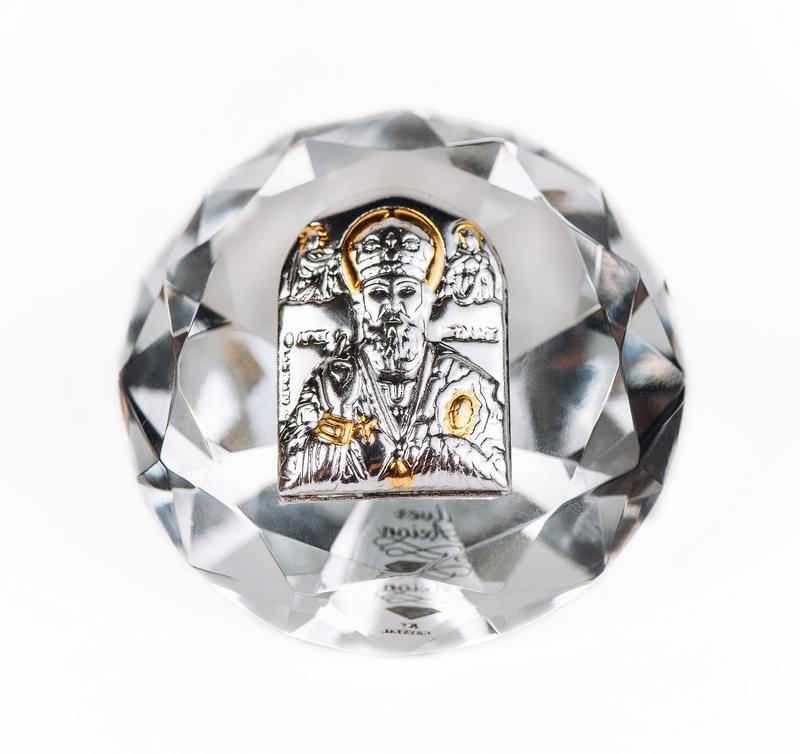 Икона Николая Чудотворца серебряная в хрустале 6,1х6,1см Серебряный оклад арочной формы с позолотой который содержится в хрустальной форме. В комплект входит оригинальная коробочка и мешочек. Ссади на иконе есть сертификат качества подтверждающий ее оригинальность Размер: 6,1х6,1 см Производитель: Silver Axion ( Греция )