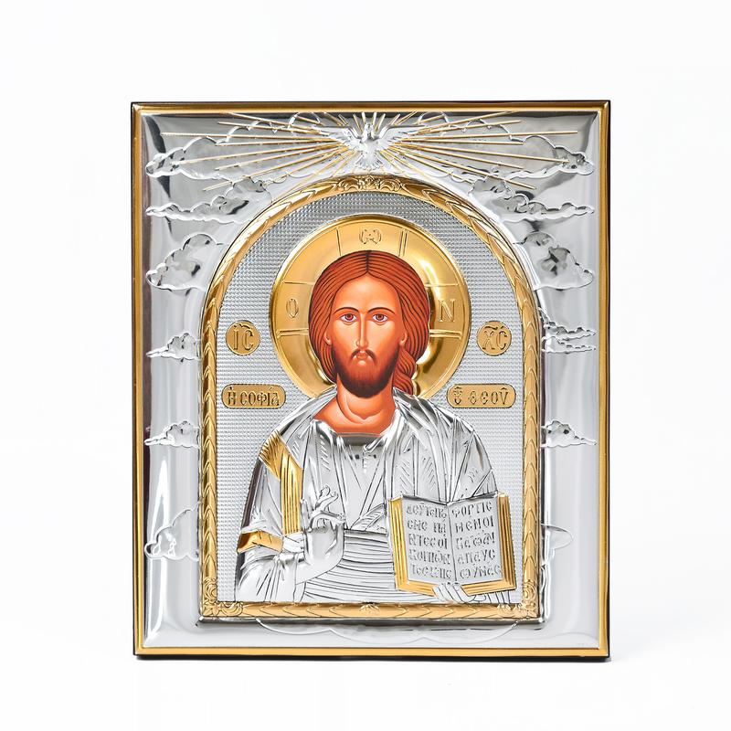 Серебряная Икона Иисус Христос Спаситель 9.3х8см прямоугольной формы без рамки Икона Иисус Христос Спаситель имеет прямоугольную форму без рамки, полностью в серебряном окладе. Оклад сделан из алюминиевого основания покрытого на лицевой части ламинированным слоем серебра 925 пробы и позолотой. Лик прописанный шелкографией. Сзади иконы есть откидная ножка - подставка и отверстие что-бы вешать на стену. Икона надежно упакована в подарочную картонную коробочку и мешочек. Доставка по всей Украине Новой почтой. Размер: 9.3х8см Производителя Silver Axion (Afon Silver) (Греция), Икона будет оригинальным подарком на любое торжество, и впишутся в любой, самый изысканный дизайн квартиры или дома. Радуйте себя и своих близких !!!