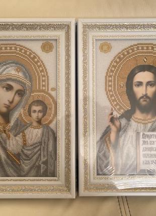 Вінчальні ікони вишиті чеським бісер, в рамці з антибліковим склом ! Нові, не використовувались за призначенням. Розміри ікони з рамкою 31* 38, вишивки 23* 31 см. Ціна вказана за дві