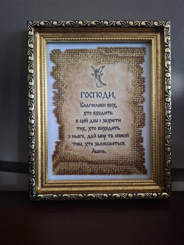 Икона "Моллитва в дом" А5Р_074 Вышитая Чешским бисером, оформлена в современный багет под антибликовым стеклом Размер работы в раме: ширина 21см, высота 17см ревнователю сопровождает всю жизнь. Приятно иметь красивую вышитую достопримечательность с помощницей для домашнего использования. Эта вышивка может стать отличным подарком мужчинам к любому празднику.