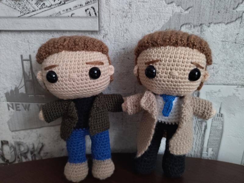 Персонажи сериала "Сверхъестественное" Дин и Кас. Пряжа полухлопок.Наполнитель холофайбер.Глаза на безопасном креплении.Продаються как вместе так и отдельно. Указаная цена за одну игрушку. Перед заказом пишите в сообщении.