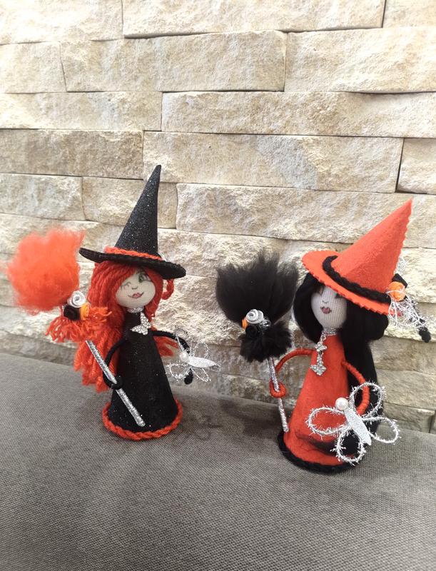 авторские ведьмочки ручной работы. прекрасно подойдут как на хелловин так и на другие праздники. Предохранения-талисмана. высота около 15 см.