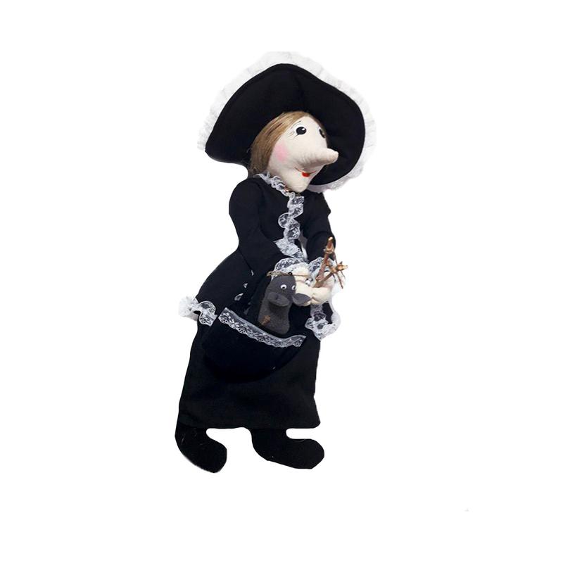 Шапокляк і щур Лариска - А ви знали, що Шапокляк — не ім'я героїні, а кличка, отримана, мабуть, через старомодний головний убір, який та носить (шапокляк — різновид капелюха-циліндра). Одвічна супутниця шкідливої баби — не менш шкідливий щур Лариска, яку героїня всюди носить у власному ридикюлі. Удвох «напарниці» відколюють жорстокі жарти та розігрують невинних жителів міста. Шапокляк приблизно 73 роки. Ось і наша лялька, це ексклюзив ручної роботи. Кожен наш виріб має свій характер та індивідуальність.