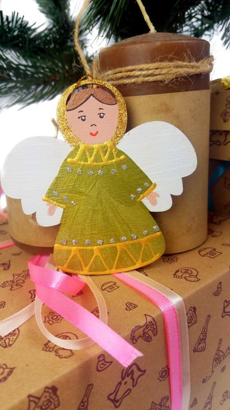 Фанерний сувенір "янгол мальований зелений" ручної роботи з дерева, handmade новорічна при...