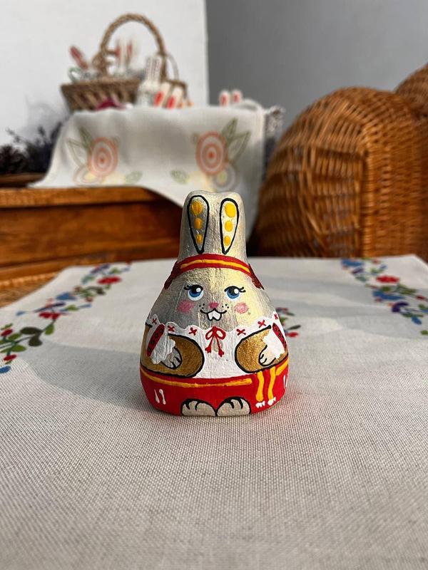 Зайчиха - символ патріотизму, української родючості, стала добрим та світлим втіленням весни. Іграшка в етно стилі створена тернопільськими майстрами. Для виготовлення беруться екологічно чисті матеріали: дерев'яна стружка й тирса, гречане лушпиння, подрібнений нефарбований папір, клейова суміш на базі борошняного клейстера. Іграшки, подібно до печива-смаколиків, випікаються у спеціально створених формах у печі, набуваючи міцності, але й не втрачаючи легкості. Стане прекрасним доповненням у Вашій колекції, слугуватиме елементом декору оселі та створить святковий настрій.