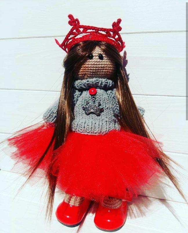 Лялечка, пов'язана гачком в техніці амігурумі. Ідеальний подарунок для дівчинки Одяг, взуття і корона знімаються Лялечка стоїть і сидить самостійно Ручки і ніжки рухаються