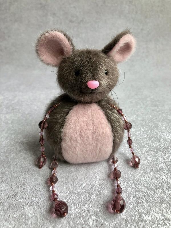 Тедді-кулька Мішеня, інтер'єрна колекційна іграшка. Зшита повністю вручну зі штучного хутра. Голова на шплінті, повертається; набита тирсою. У животику гречане лушпиння і скляний гранулят для посидючості. Очі скляні (Німеччина). Хвіст із натуральної сваляної вовни, армований дротом. Лапки з бісеру та скляних намистин Preciosa (Чехія). Зріст сидячи 11 см. Рекомендації щодо догляду за іграшкою: прати не можна, тільки сухе чищення; не призначена для ігор маленьких дітей.