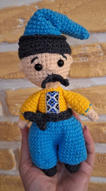 Игрушка связана крючком из полухлопка, имеет рост 19 см.