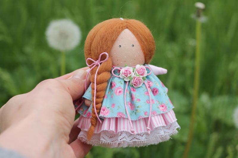 Текстильна лялька ручної роботи. Є петелька, за яку можна вішати. Лялечка внесе родзинку до Вашого інтер′єру, принесе радість, затишок та тепло в будинок. Буде незабутнім подарунком для ваших рідних людей. Зріст 10 см. Сухе чищення