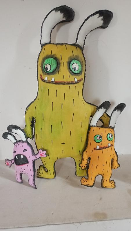 Монстрики текстильні,фарба акрилова,покриті лаком,розмір 40 см 21 см 15 см, наповнювач халофайбер ,в єдиному екземплярі.