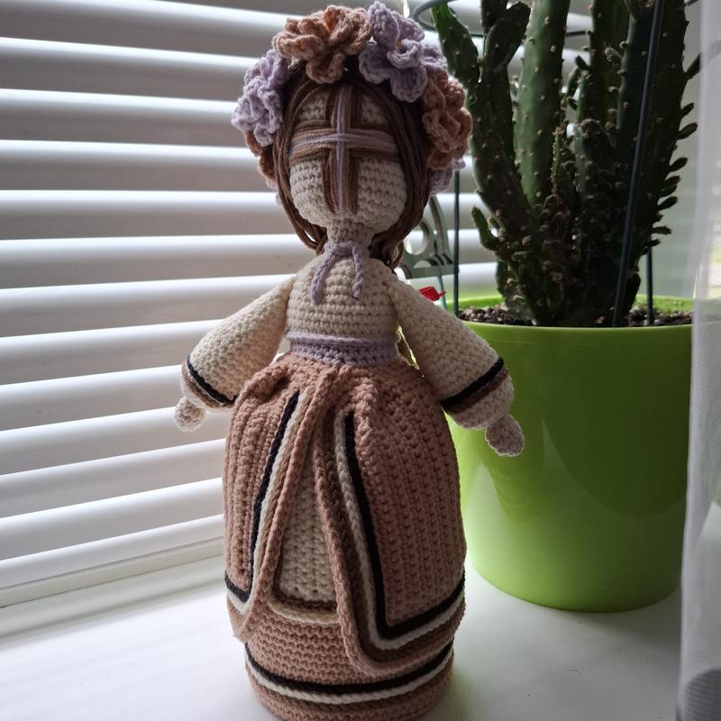 Інтер'єрна лялька-оберіг. В'язана гачком з якісної натуральної нитки. Висота 26 см. Стане гарним подарунком або оберегом вашого дому.