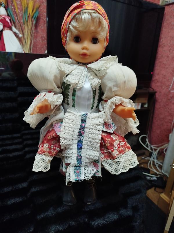 На зображенні показана вінтажна лялька Lidova Tvorba в традиційному народному костюмі. Лялька походить з Чехословаччини (зараз Чехія). Вона одягнена в традиційний моравсько-словацький народний костюм. Ляльки Lidova Tvorba виготовляються вручну. Компанія Lidová tvorba Uherský Brod була заснована в 1936 році і працює досі.