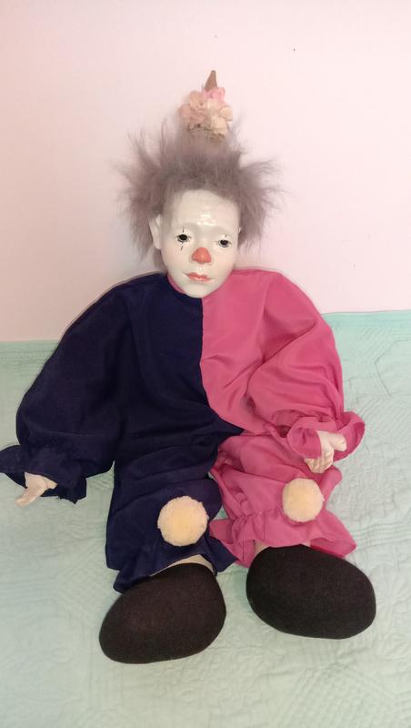 Голова фарфор,тулуб текстиль.Сидить. Сколів немає
