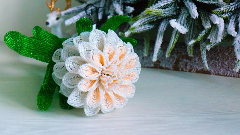 Жоржина з бісеру. георгина з бісеру. хендмейд. подарунок. квіти з бісеру