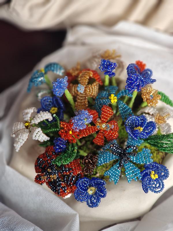 Оригінальний подарунок, що замінить будь-які квіти✨️букет із бісеру в гіпсовому кашпо 'ру...