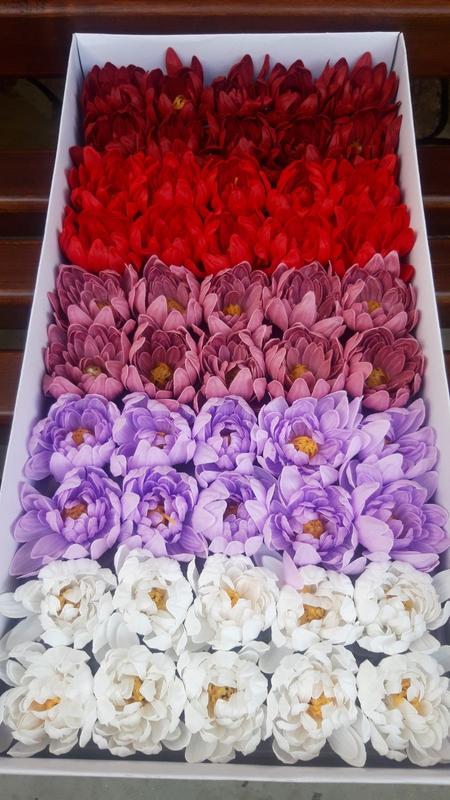 Категорія -- мікс з мильних хризантем Кількість відтінків квітів з мила -- 5 кольорів В цьому міксі по 10 хризантем з мила таких відтінків -- бордовий, червоний, махагон, лаванда, білий Плодоніжка мильної квіточки -- зелений пластик з отвором під шпажку Розмір бутончиків гортензій з мила -- 5х5 см Кількість мильних гортензій в упаковці -- 50 шт Наші мильні квіти не в'януть. А неповторний і ніжний аромат зберігається від одного до трьох років. Квіти, виготовлені на основі мильної суспензії -- це сучасний тренд в флористиці. Адже нев'янучі букети - доречний подарунок коханим, колегам або родичам напередодні знаменні події. Асортимент мильних квітів складається з таких відтінків: червоний, білий, молочний, рожевий, махагон, світло-рожевий, малиновий, бордо, фіолетовий, бузковий. Пропонуємо мильні квіти оптом і в роздріб з доставкою по всіх регіонах України. Для копоратівних покупців передбачені спеціальні ціни нижче роздрібного прайсу. Запрошуємо ознайомитися з кучерявими, серцеподібними і стандартними трояндами з мила, а також камеліями, жоржинами, хризантемами, півоніями, сакурою, гортензіями, тюльпанами, гвоздиками, капелюшними коробками для букетів з мильних квітів.