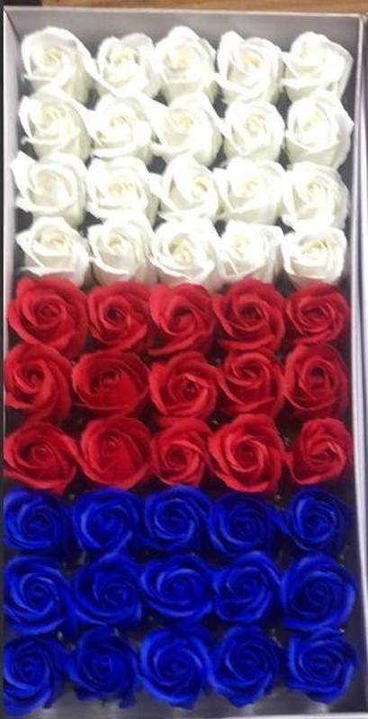 Категория -- микс из мыльных роз Количество оттенков цветов из мыла -- 3 цвета Плодоножка мыльного цветочка -- зеленый пластик с отверстием под шпажку Размер бутончиков цветочков из мыла -- 5х5 см Количество мыльных роз в упаковке -- 50 шт Наши мыльные цветы не вянут. А неповторимый и нежный аромат сохраняется от одного года до трёх лет. Цветы, изготовленные на основе мыльной суспензии - это современный тренд в флористике. Ведь неувядающие букеты - уместный подарок любимым, коллегам или родственникам в канун знаменательных события. Ассортимент мыльных цветов состоит из таких оттенков: красный, белый, молочный, розовый, махагон, светло-розовый, малиновый, бордо, фиолетовый, сиреневый. Предлагаем мыльные цветы оптом и в розницу с доставкой по всем регионам Украины. Для корпоративных покупателей предусмотрены специальные цены ниже розничного прайса. Приглашаем ознакомиться с кучерявыми, сердцевидными и стандартными розами из мыла, а также камелиями, георгинами, хризантемами, пионами, сакурой, гортензиями, тюльпанами, гвоздиками, шляпными коробками для букетов из мыльных цветов.