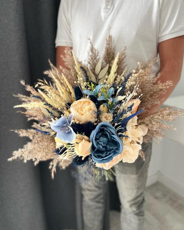 Букет натуральний в синіх та бежевих тонах з сухоцвітами