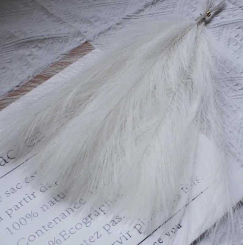 Пампасна трава Букет штучний 10 шт Білий Спокуслива трава пампасів: стебла 42 см заввишки з 9 см пір'ям. Гарне рішення для домашнього декору, офісу, весілля, вечірок. Не потребує догляду. Доглянутий Также може стати подарунком або прикрасою до нього.