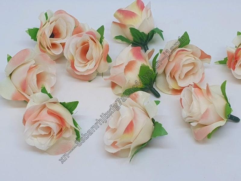 Бутон троянди (тканина) 3,5 см, колір-айворі з рожевим, шт