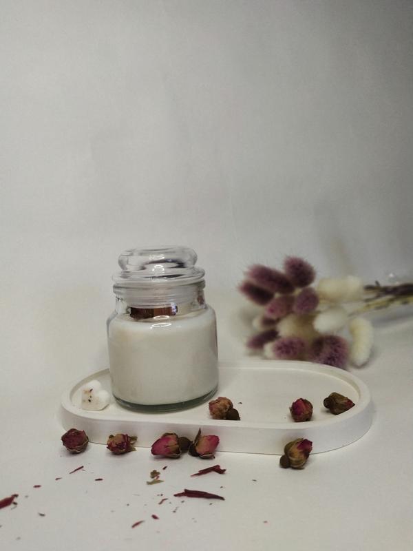Свічка у скляній тарі з сухоцвітами
