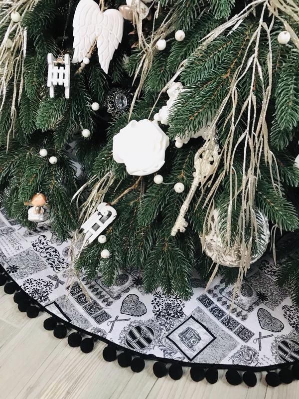 Спідниця під ялинку є незамінним декором беззмінного символу Нового Року! Вона надає завершального вигляду прикрашеній ялинці. На ній чудово розмістяться подарунки. Легко одягається навколо стовбура дерева та застібається на ґудзички. Спідниця складається з красивої декоративної тканини, утеплювача та підкладки, завдяки чому спідниця добре тримає форму. Діаметр спідниці 110 см (на фото ялинка 180 см).