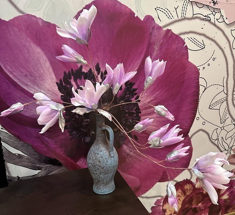 Букет "Магнолія" Ручна робота, японський шовк, техніка Сомебана. Висота 50 см. Інтер'єрна прикраса, елемент декору. Приймаю індивІдуальні замовлення.