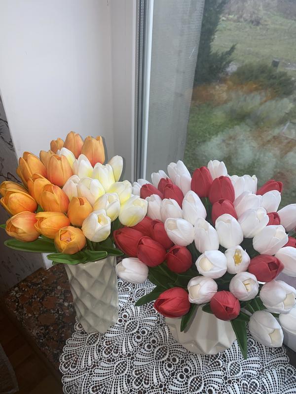 Латексні тюльпани які максимально реалістичні та наближені до живої рослини 🥰 Висота 35см Можна ставити на вулиці Не бояться сонця ☀️та морозів 💨 Можна мити 💦 В наявності кольори червоний, білий жовтий блакитний, синій Також є у продажі латексні троянди і кали Рекомендую переглянути всі мої оголошення А також підписатися на сторіночку💕