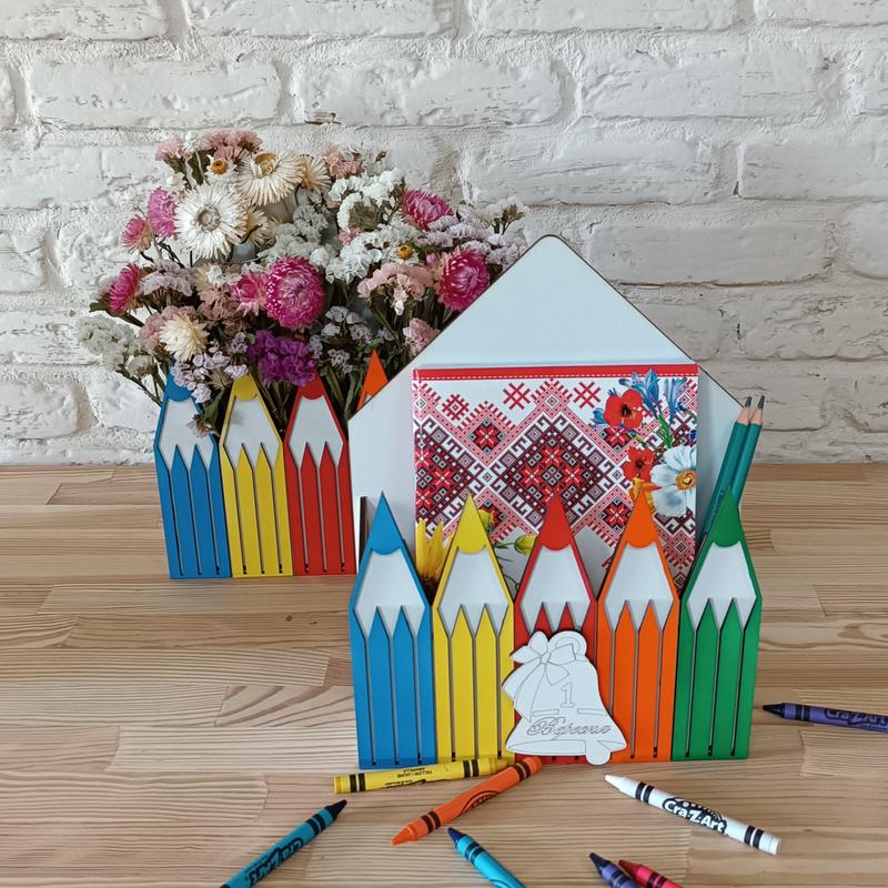 Букет квітів у корзинці-органайзері для вчителя "з днем вчителя!