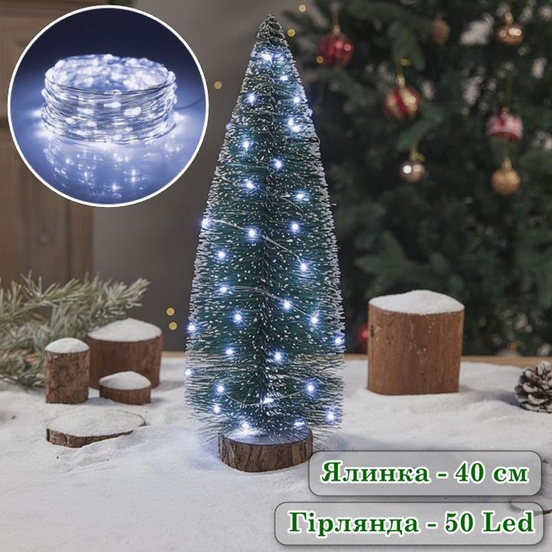 Ялинка декоративна creative tree 40 см на дерев'яній підставці з імітацією снігу та usb гі...