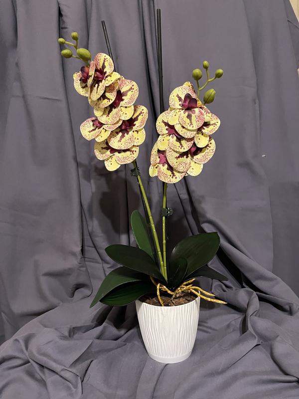 Искусственные цветы, премиум качества. гелевые и латексные орхидеи,на 2 веточки.Высота с горшком 53-57 см., очень нежные на ощупь.Не отличаются от натуральных, не нуждаются в уходе! Украсьте ваш дом,офис, кофейню,буток. Сейчас это очень современно в интерьере.Створени из качественных материалов,та из натуральной коры дерева.Краса которая никогда не пачкает.Пите на вайбер(*************) или( *************)Людмила.Новая почта.Накладной платёж.