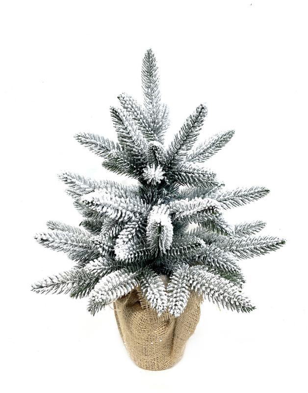 Компактна штучна лита ялинка виглядає ошатно навіть без додаткових прикрас. Всі голочки - литі, точна 3D імітація хвої живої ялинки. Встановлена у горщик, прикрашений мішковиною, з обважнювачем всередині - для захисту від перекидання. Об'ємне густе напилення на ялинці реалістично імітує сніг, який тільки що впав на гілки пухнастими пластівцями. Матеріалом розпилення є натуральна бавовна, він екологічний і не має запаху, безпечний для дітей і дорослих. Відмінний декор для дитячої кімнати, офісного столу, оформлення вітрини магазину або кафе. Може стати чудовим новорічним подарунком.
