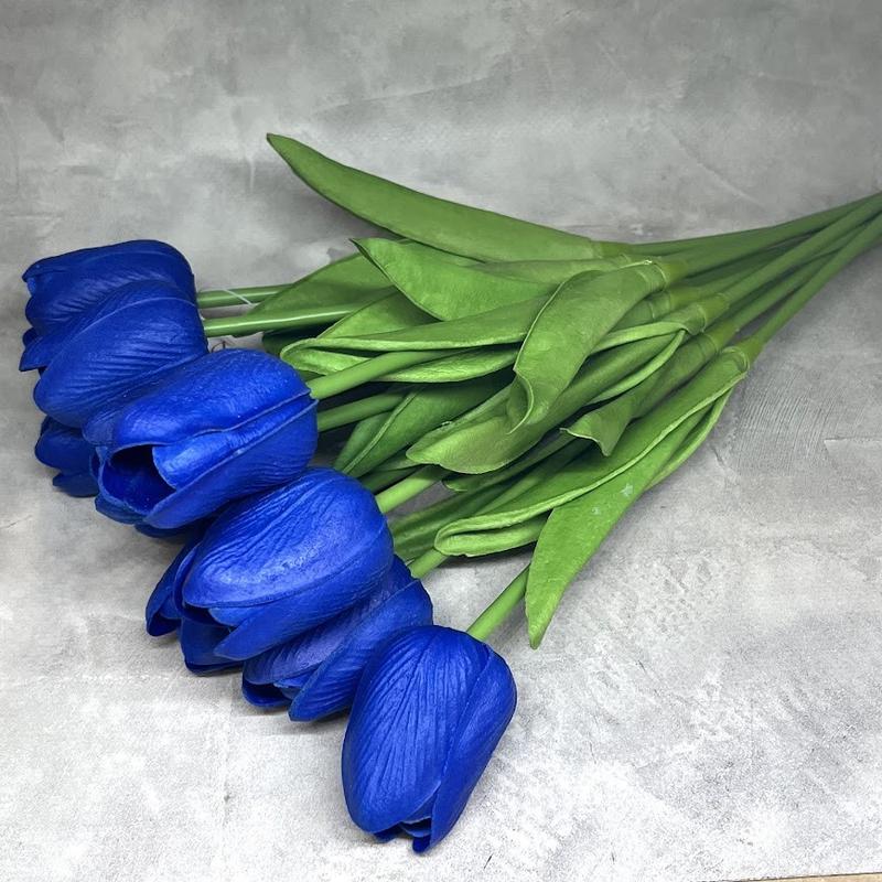 Букет з 10 штучних тюльпанів (латекс) довжина 33 см, бутон ≈4,5 см, синий , арт 019181, си...